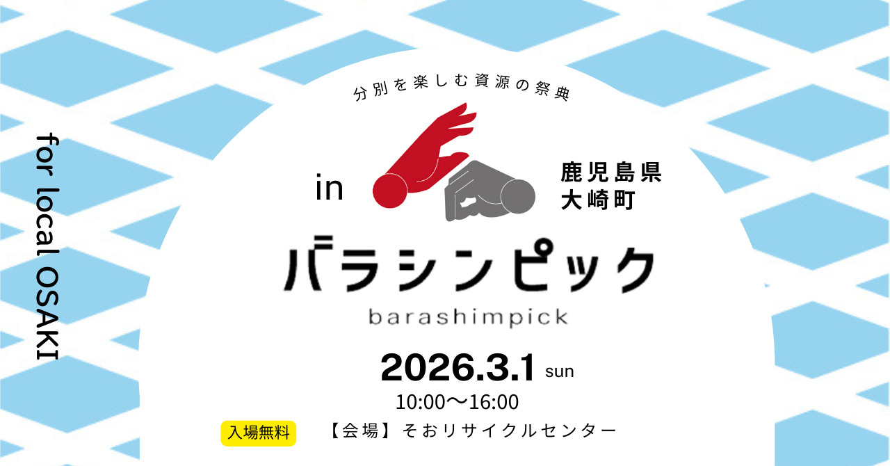 3月1日に鹿児島県大崎町にて分別を楽しむ資源の祭典『バラシンピック』を開催します。